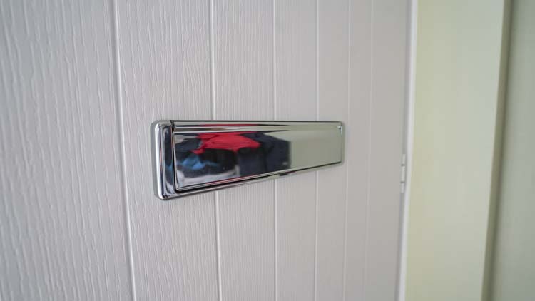 The chrome finishing of the Escutcheon finger pull/thumb turn handle and letter plate to both the inside and out of the door enhances its elegance.