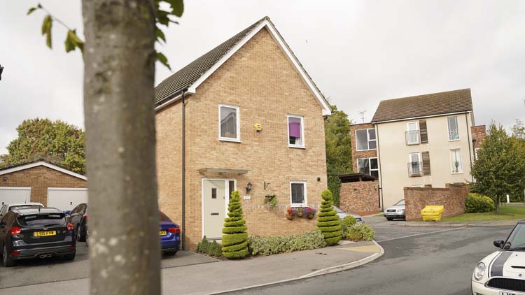 This beautiful light grey front door with a side window adds kerb appeal to the exterior of this detached property in Bracknell.