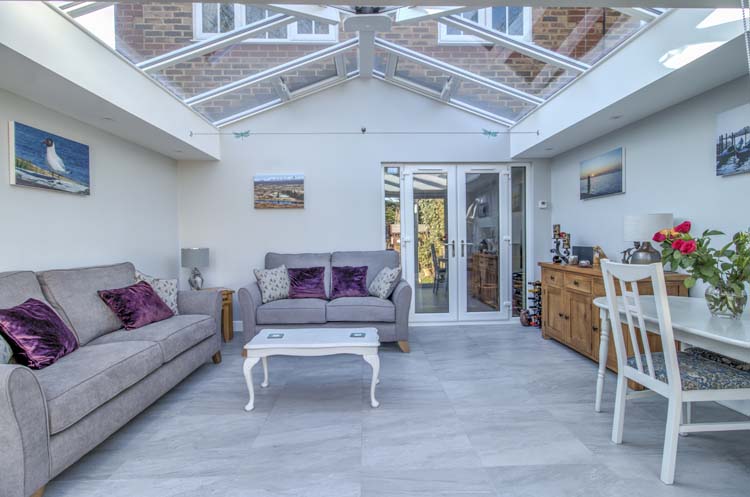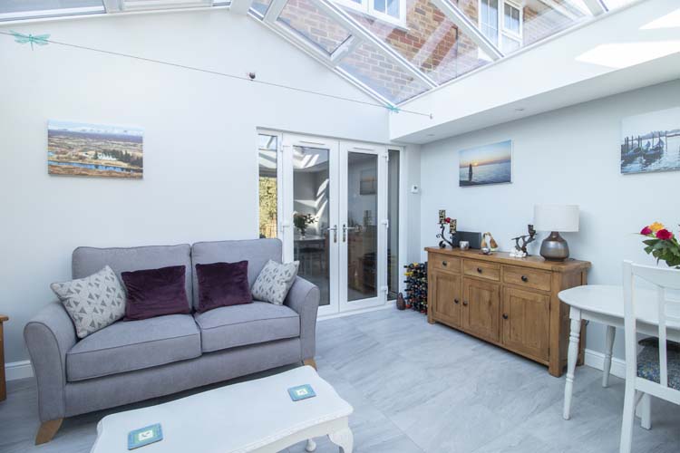 A Livin Room Orangery has the look of an Orangery but does not have a flat roof meaning that it is quicker to build and more competitively priced. Poly-pipe water under floor heating was installed at this property in Ascot to ensure that the large open plan space stayed warm through the colder months and our clients were pleased that they agreed to have this done, thinking that the underfloor heating would be insufficient for the size of the room – it’s warm as toast, and the room is light, airy and welcoming!