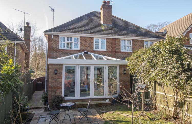 Originally the owners approached us for a construction where they could spend time all year around. After a comprehensive consultation with our senior designer, the owners decided to improve their home with this wonderful Orangery in Ascot. We also installed a set of French Doors and 2 fixed casements opening to the garden.