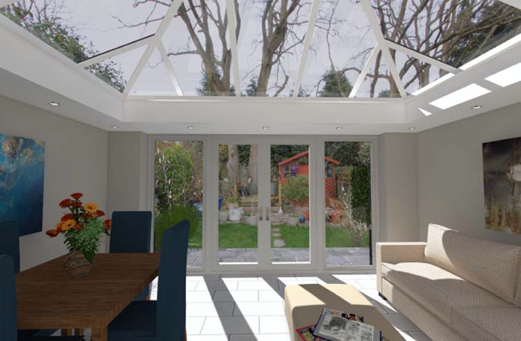 Livin Room Orangery with Double Glazing Windows, French Door and Roof Lantern, Ascot