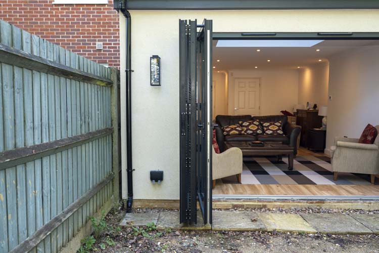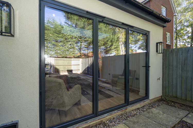 The bi-folds have high-performance, toughened argon gas-filled glazing units paired with a black spacer bar and a soft coat of Low E glass to ensure a comfortable and sustainable living space.