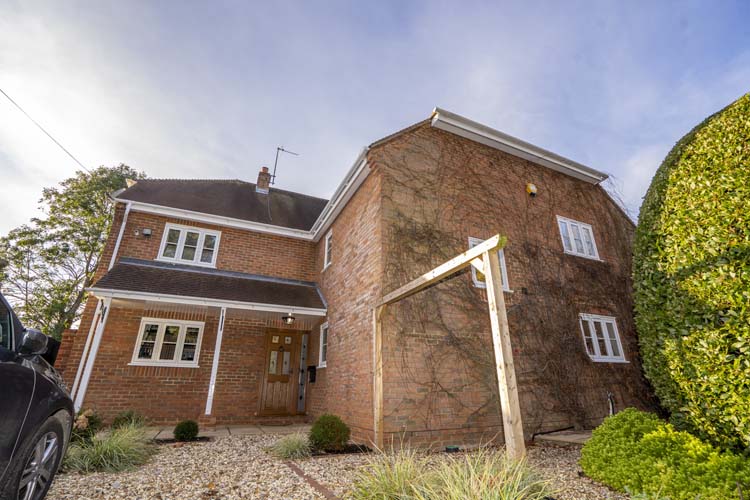 The clients decided on a dual colour Dunlace Composite door from Apeer finished in Oak on the exterior with leaded glazing within four panes and side panel that would compliment the traditional mixed red brickwork. Inside the entrance door is finished in white to complement the interior decor.