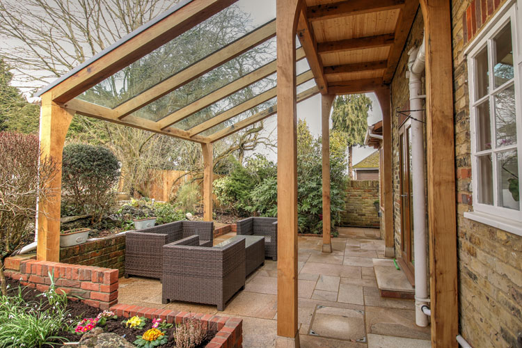 The owners of this property in Chorleywood wanted to be able to enjoy their garden, no matter what the British weather had in store. An oak veranda from Thames Valley Timber has provided them with exactly that. Come rain, wind or shine, our client can enjoy the outside all-year-round.