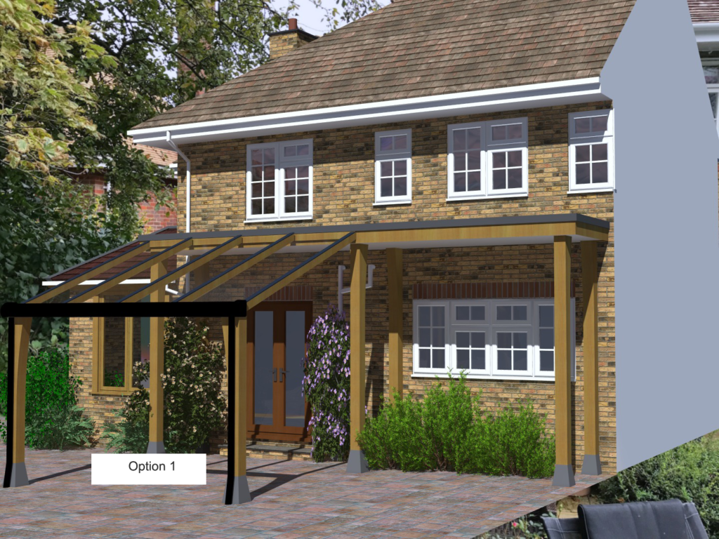 They had looked at other oak verandas on the market, but were unsure how to address their needs, both with functionality and style. After our designer spent some time understanding exactly what the owners wanted, he provided them with two different options showcased as 3D architectural drawings. One option suggested extending the glazed roof along the length of the property and the other option offered the structure to be housed just in front of the French doors leading into the back of the property.