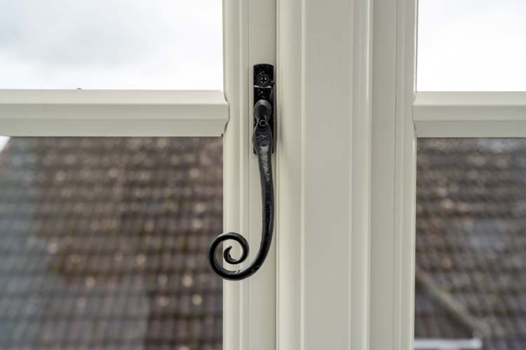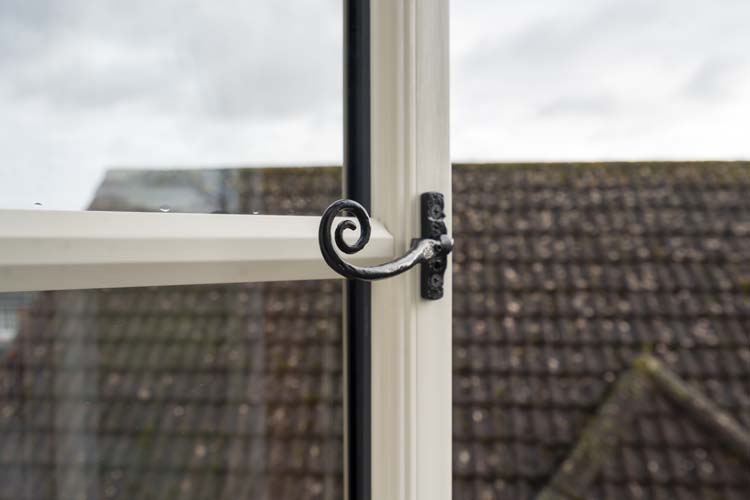 To complement the home’s period architecture, the homeowners selected black wrought iron monkey tail handles for the windows, adding a period touch that enhances the traditional aesthetic.