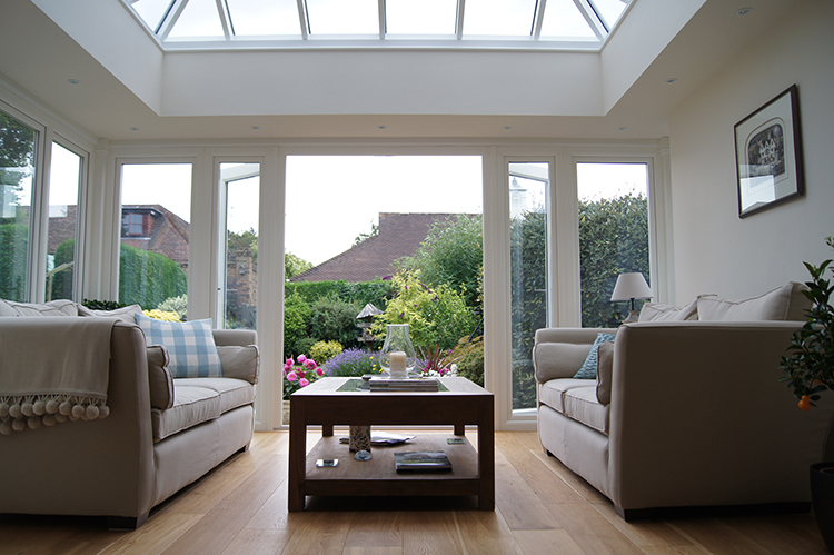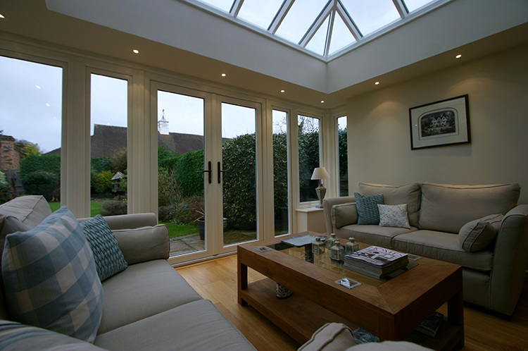 Our client originally wanted to replace this with an aluminium conservatory; they didn’t want uPVC. After a visit to our showroom, our Designer introduced them to Evolution, a timber-alternative solution. Our client couldn’t believe how closely it resembled timber. They didn’t think timber was an option before and chose a timber-alternative Orangery in Guildford for their home.