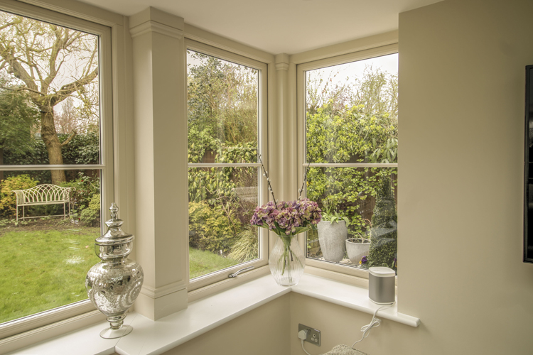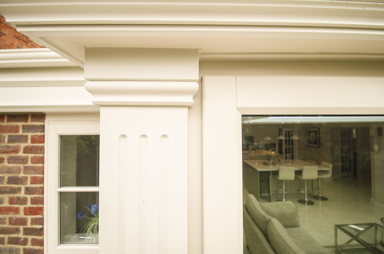Thames Valley Windows worked with our recommended builder to knock through and open up the space. We then installed the timber-effect Orangery. The decorative fascias, pillasters and sills are made from Accoya timber. The lantern roof is uPVC and features self-cleaning glass.