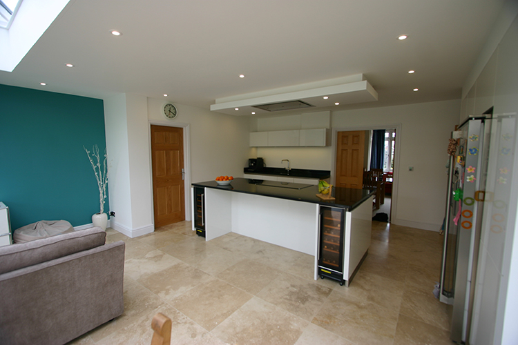 Our recommended builder undertook all of the works including raising the existing ceiling and incorporating new RSJs so that the new ceiling area is flat.