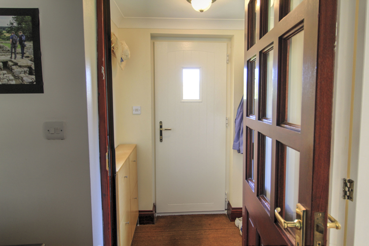 The front door is an Apeer 70 door in Newbury. These doors are the most secure front doors on the market. They are 70mm thick (hence the name), triple glazed and have an A rating for energy efficiency. A double rebate offers extra protection against draughts. The doors benefit from a host of Secured by Design features as standard and large steel hinge bolts to ensure maximum security at the weakest point.