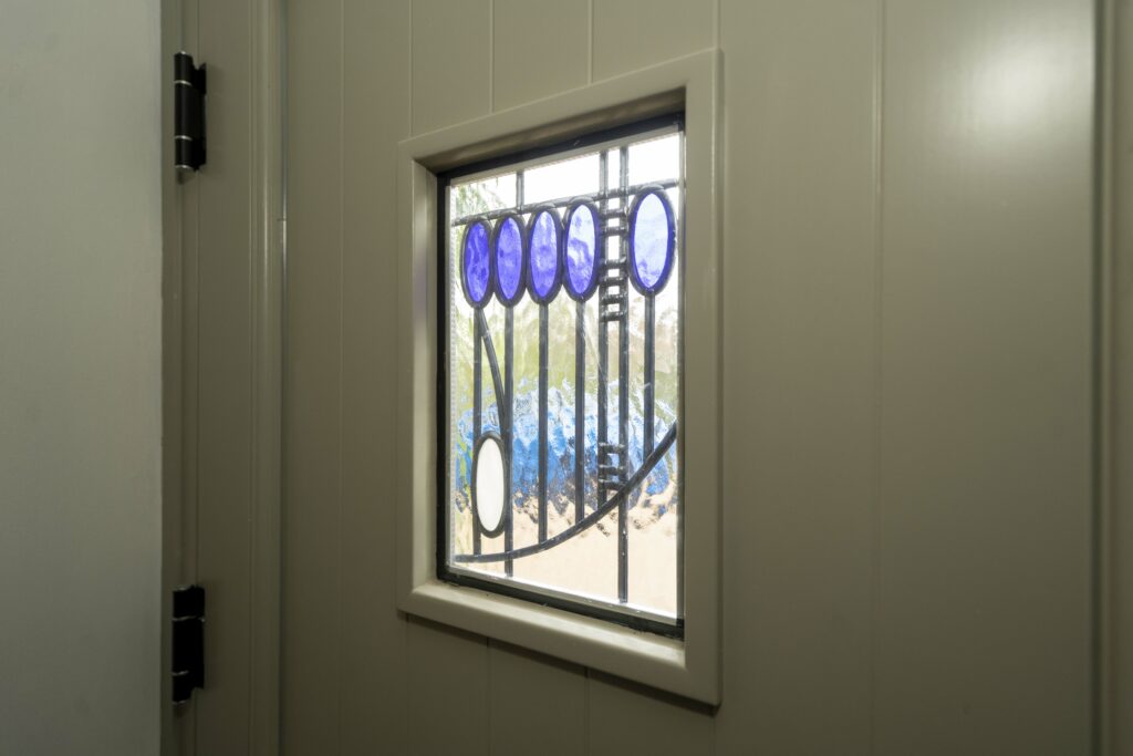 They were also keen to retrofit the vision panel with their existing 14mm stained glass unit and reuse some of the door furniture, particularly the black ring knocker.