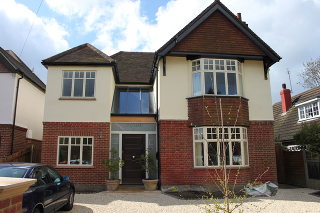 Our client undertook a large renovation and extension project on this house in Chertsey. Having originally thought they would use timber windows, we advised a ‘Crittal’ replica window would be much more in keeping with the 1930s period property.