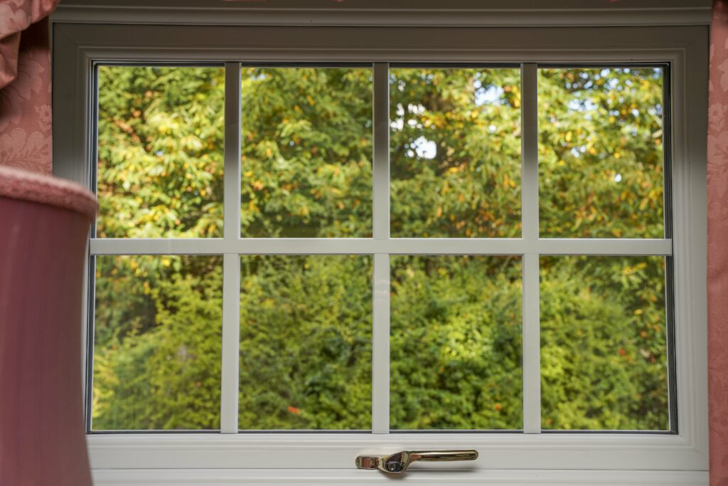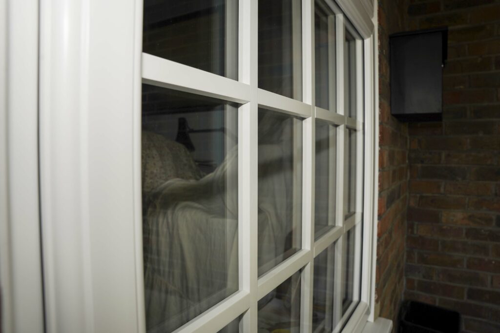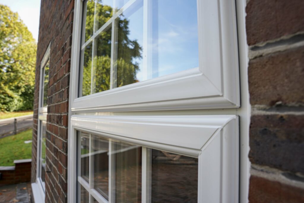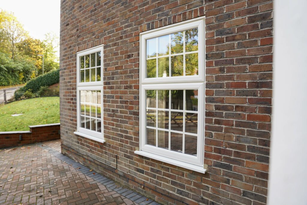 The replacement double-hung sash windows have been beautifully designed with impeccably clean lines and a smooth white finish on both sides, finished with scotia beading to give the windows a more traditional appearance.