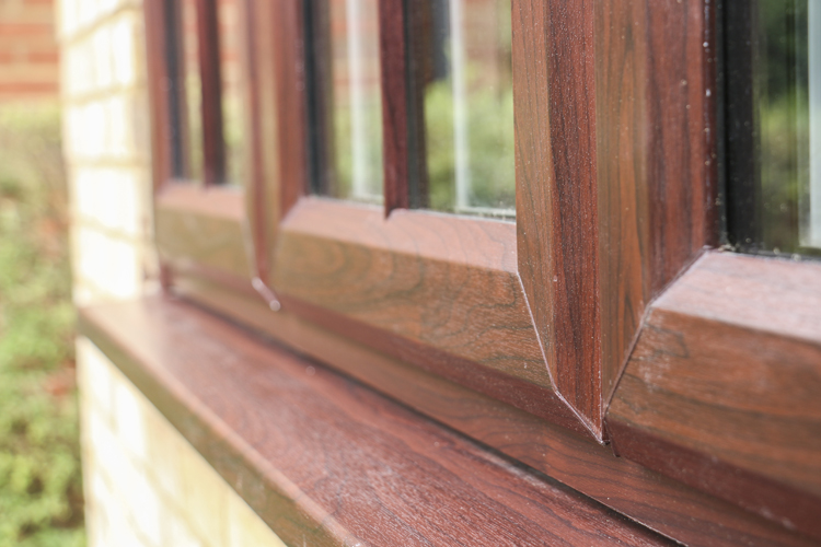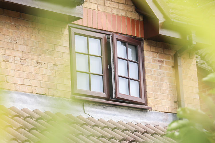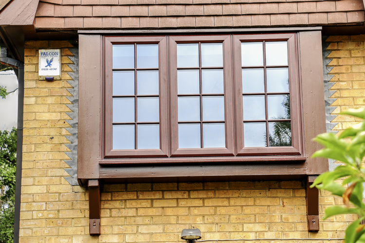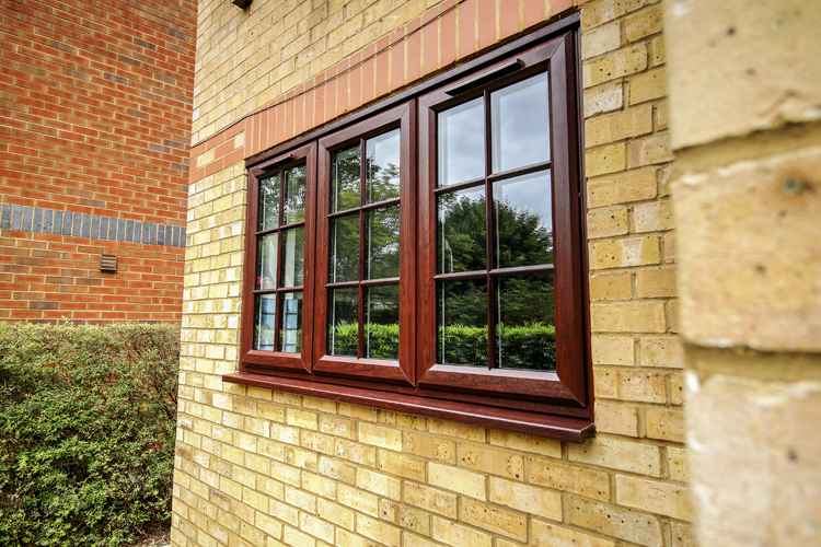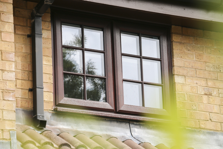 In keeping with the street and property style, Rosewood Double Glazing in Maidenhead was chosen. The uPVC lipped casements have a rosewood grain on the outside, and a smooth white finish on the inside. Face fix Georgian bars have been fitted externally and give the double glazing windows a traditional look. Chrome handles give the windows a modern touch.
