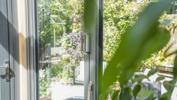 On the exterior, the bifold doors have a high-quality stainless steel level handle and a multi-point lock; on the inside, a flat interim stainless steel handle provides a sleek finish.
