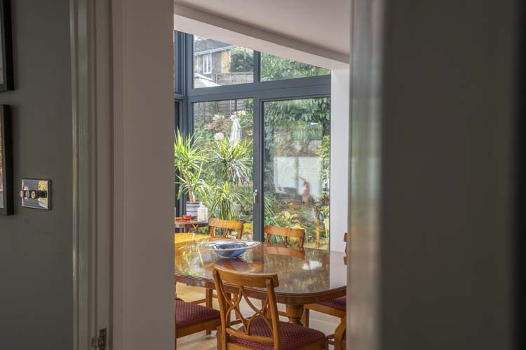 The glass extension creates a beautiful ultra-modern space and architectural feature that instantly enhances and modernises the family home’s facade.