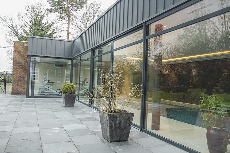 Thames Valley Windows worked with a high-end residential developer to install a large set of SVG In-Line Sliding Doors and large fixed frames into an aluminium corner post for a completely glazed gym area. The pool doors have two central sliders with two fixed panels on either side, all on the same track for a seamless sightline. The sliding doors open a large part of the pool area to the outside on nicer days, and the track is completely flush, allowing for a level floor finish inside and out. We used a fixed transom running through the doors, set 450mm from the top, to reduce the size of the sealed units slightly and ensure that the maximum weight capacity of the doors was not exceeded. Despite their size, the sliding doors are easy to open and close.