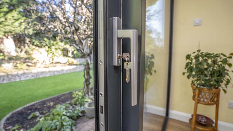 With the help of our experienced designer Ray, our Camberley homeowners chose aïr 500 LS lift & slide doors in Anthracite grey matt RAL7016 in a four-pane configuration with two centre sliding doors and two fixed panes each with toughened safety glass with a single mono track. The finishing touch is the matching exterior anthracite grey handles.
