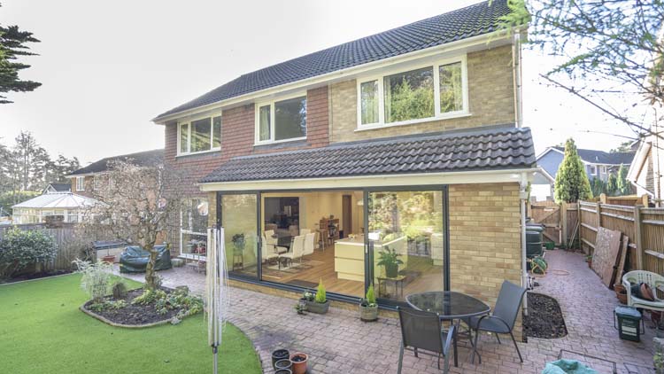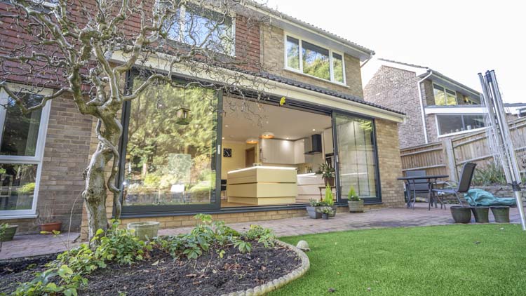 Another stunning installation of aluminium sliding patio doors into a new kitchen extension at a detached property in Camberley.