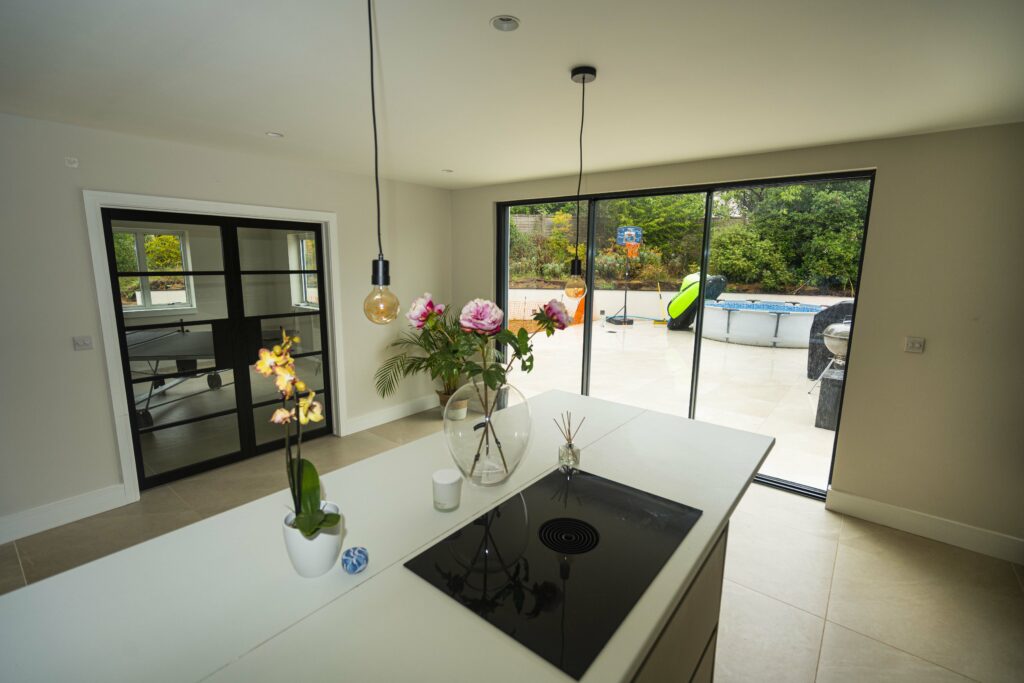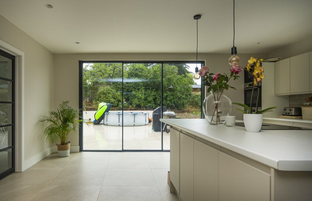 Based on the property’s contemporary design, our designer, Liam, recommended that air Mod flush anthracite grey aluminium windows and Vision20 glazed sliding doors provide the minimalistic modern look they require and offer impressive levels of thermal insulation and airtightness.