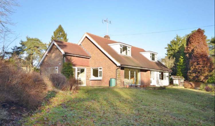 The family home is nestled within one of Lower Bourne’s most sought-after private roads and is positioned comfortably within landscaped gardens.