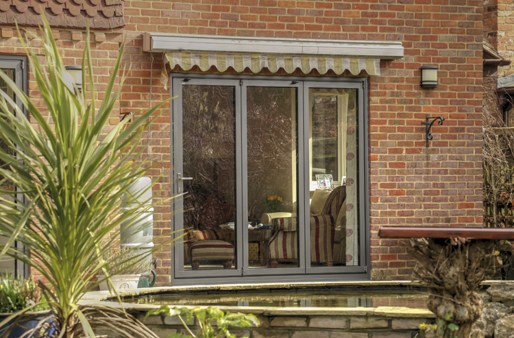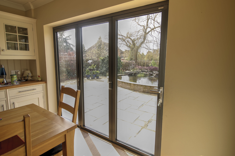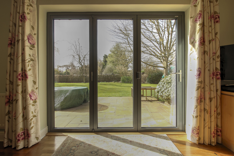 The bi-fold doors in Farnham Common are from Solarlux. They are aluminium and finished in Grey (DB703) inside and out. We installed a 3 panel set in the living room and in the play room, to match the original set in the dining area.