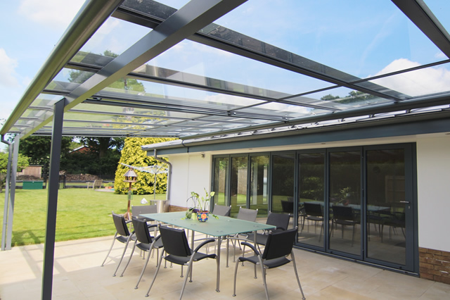 This beautiful family home in Wendover already had a number of Solarlux Bi-Folding Doors installed which opened on to the patio area from different areas of the house. Our client wanted to connect the zones and provide a covered area which would allow family and friends to enjoy the outside space in all weathers.