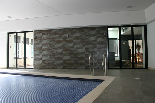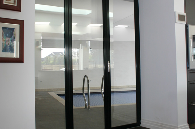 We installed three sets of Solarlux SL 35 Aluminium Folding Glass Doors between the kitchen and dining room to the swimming pool area.