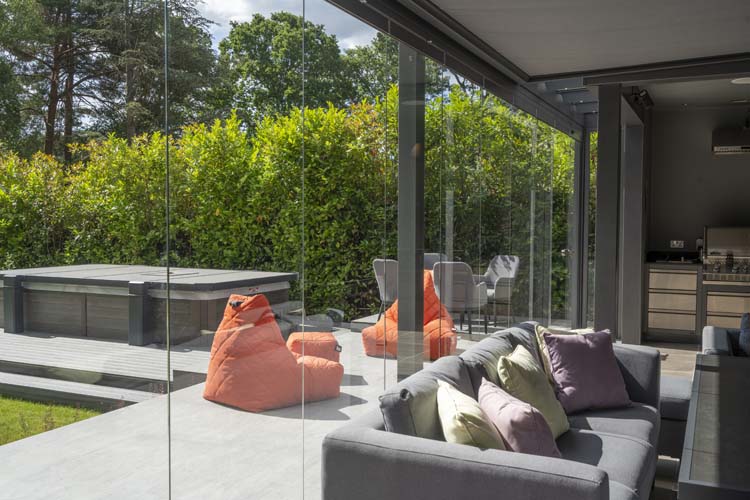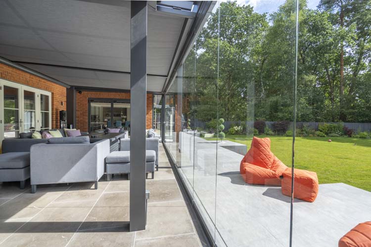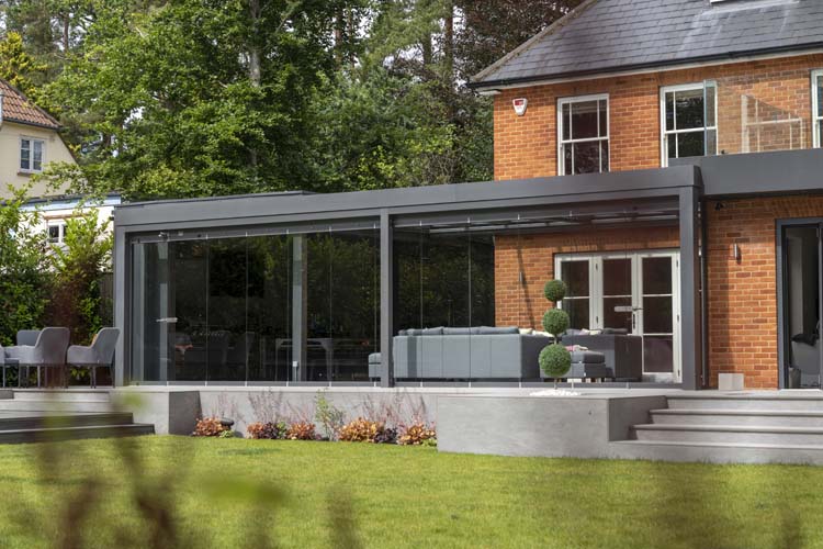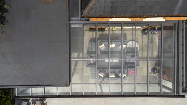 When the glass panels are fully closed, a 3mm vent is present for permanent ventilation and to protect against wind and rain. When open, they conveniently stack into the corner to open up the glass extension, eliminating the distinction between inside and outside.