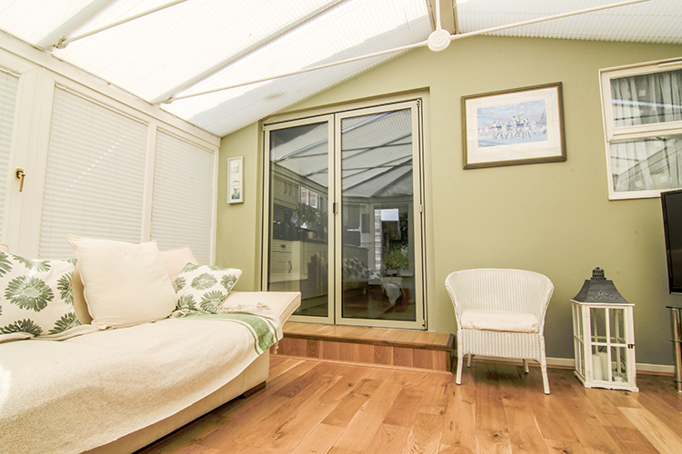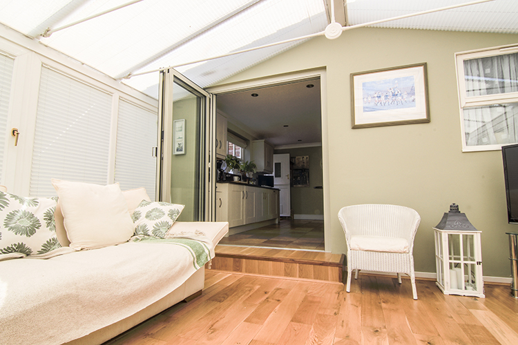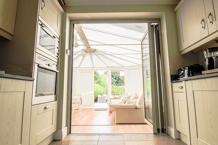 Our client also decided to have bi-fold doors installed to seamlessly connect the kitchen and conservatory. They chose the popular SL 60e bi-folds, finished in RAL 7032 – French Grey, which blend in beautifully with the decor. All panels slide left so that when they are fully open, they take up very little space, unlike regular internal doors or French doors which would encroach on the space.