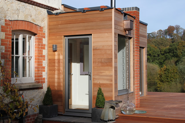 We have used a subtle contemporary grey finish to the frame which has blended well with the timber cladding of the building.