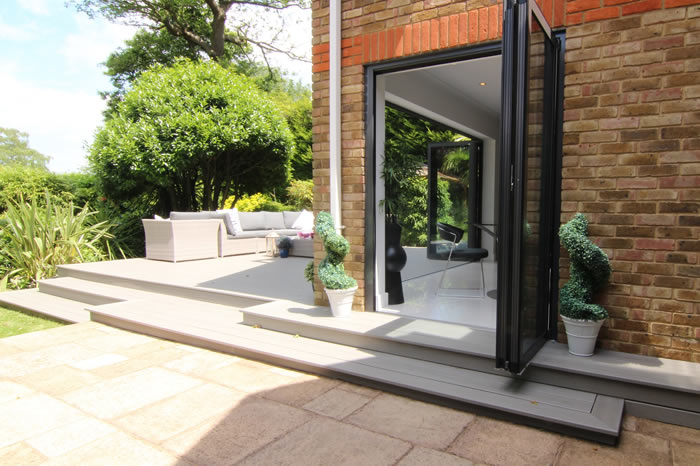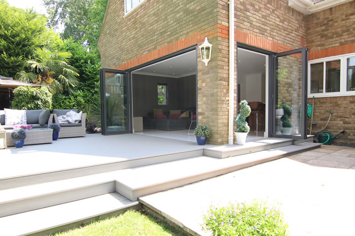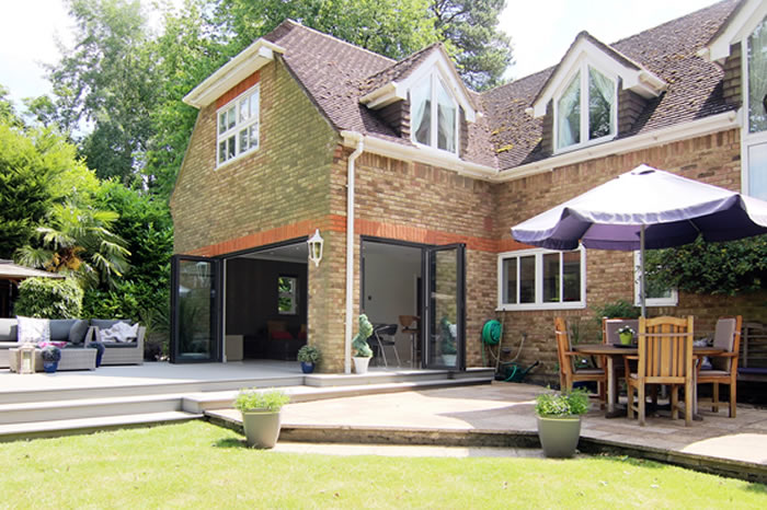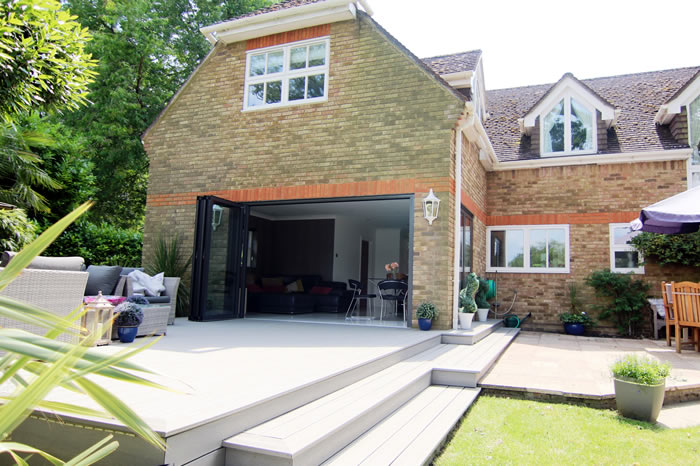 An open plan layout and contemporary bi-folding doors have made a dramatic impact on a modern detached Surrey home.