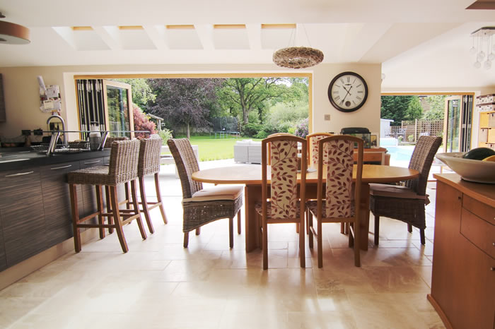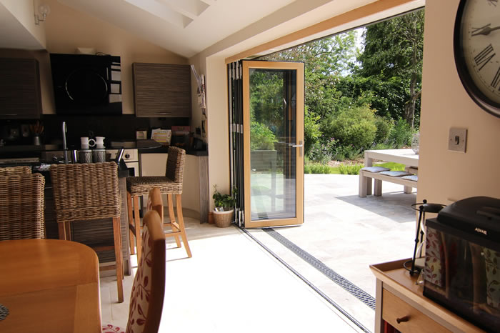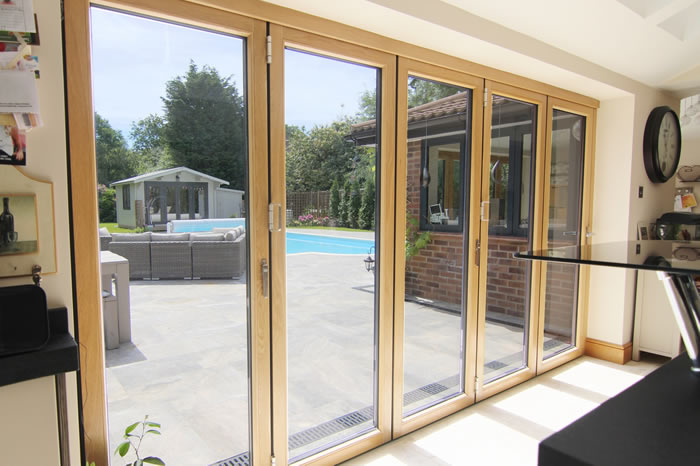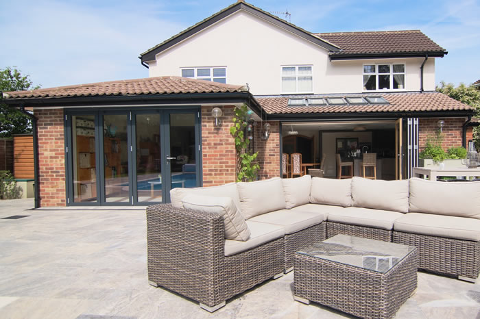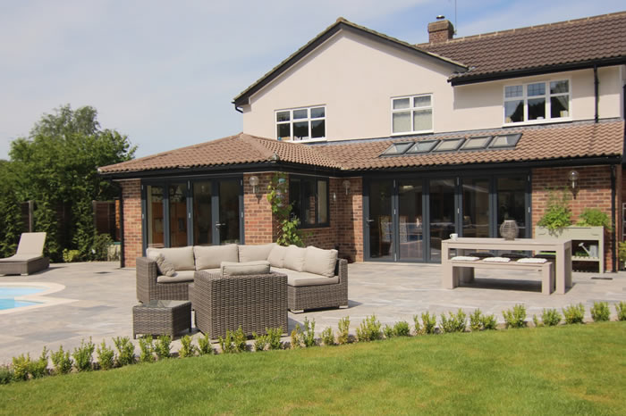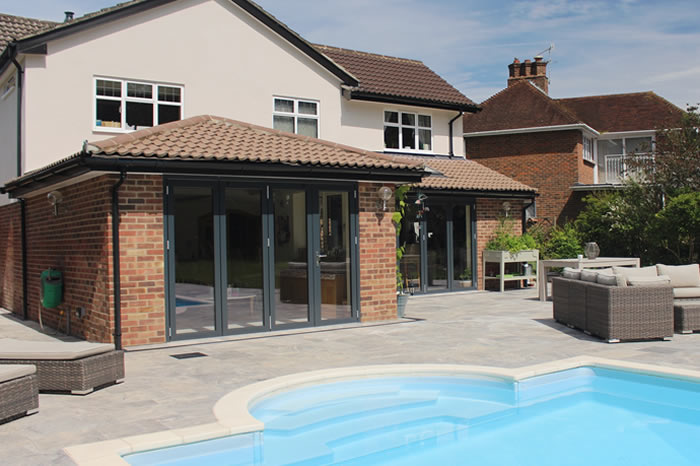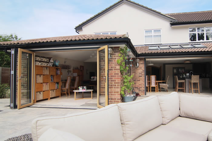 Our high performance composite bi-folding doors and aluminium windows provided the perfect finishing touch for a spectacular extension on a family home in Cranleigh.
