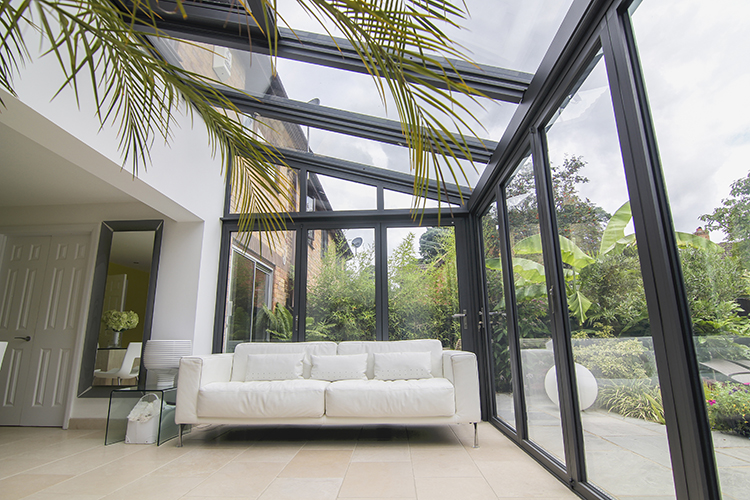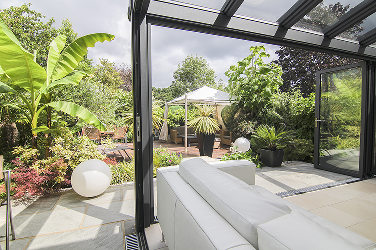 The fully glazed extension combines an Akzent Plus Roof, Solarlux SL 60e Tilt & Turn Windows and Solarlux SL 60e Bi-Folding Doors. The doors glide open onto a patio area, complete with exotic planting. The extensive glazing makes a bold design statement and has totally transformed the flow of light into the rear of the property.