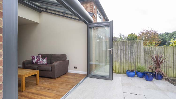 Part of their brief was to remove the old patio doors between the house and conservatory to create a bright and spacious open plan living space extending from the dining area they could use all year round.