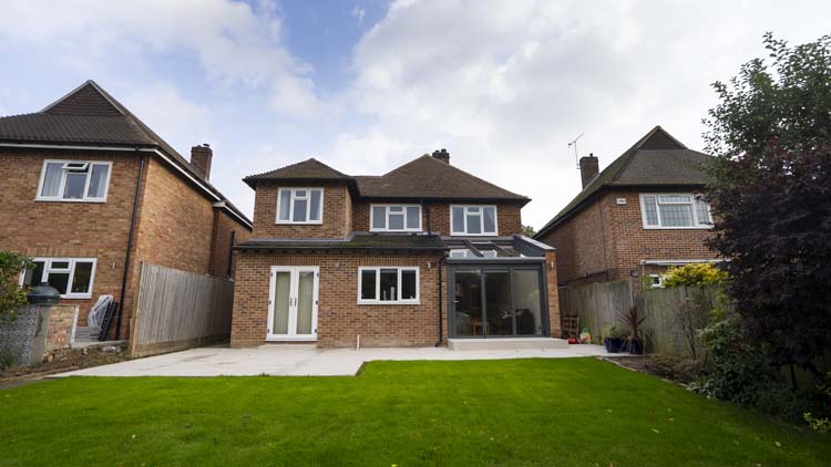 This beautiful detached property in Wokingham has been completely revitalised with a Solarlux Wintergarden glazed extension that has transformed the ground floor area by creating a luxurious open plan living space filled with natural light.