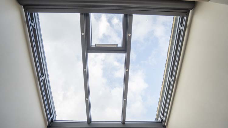The electric roof vent allows for fresh air to enter the room when the bifold doors are closed.