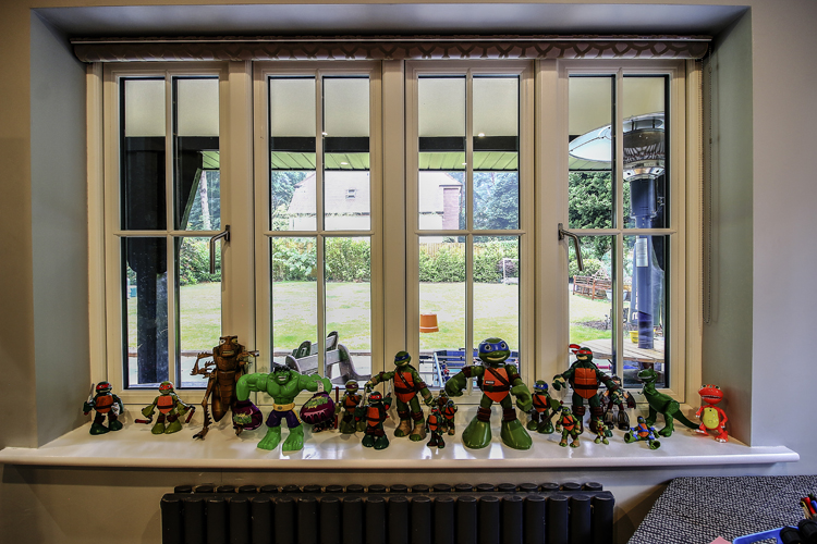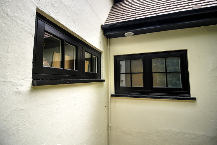 The new timber-effect double glazed windows are from Evolution’s flush range. They are uPVC windows, made to look like timber. They have the strength of a uPVC window with the benefit of being virtually maintenance free, and are designed to emulate the aesthetics of a traditional timber window. They are finished in a black grain on the outside and white on the inside.