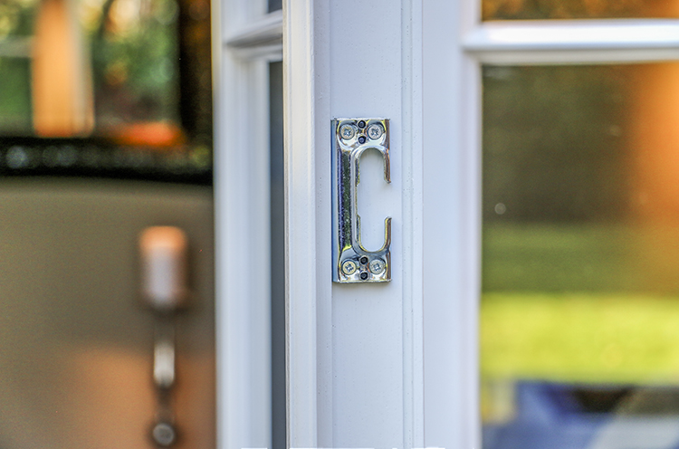 The timber French Doors in Sandhurst are made from factory-finished, engineered timber. The side panels are dummy casements, the Georgian bars, kickplate and header all line through, contributing to the even proportions.