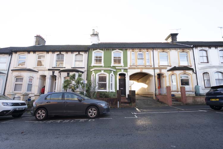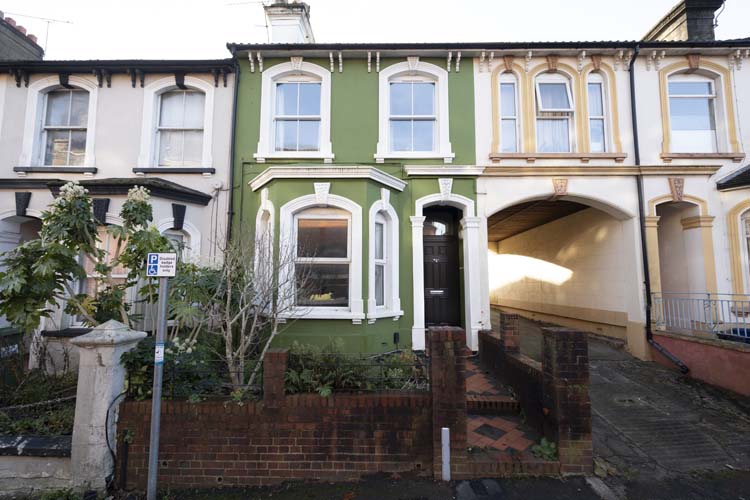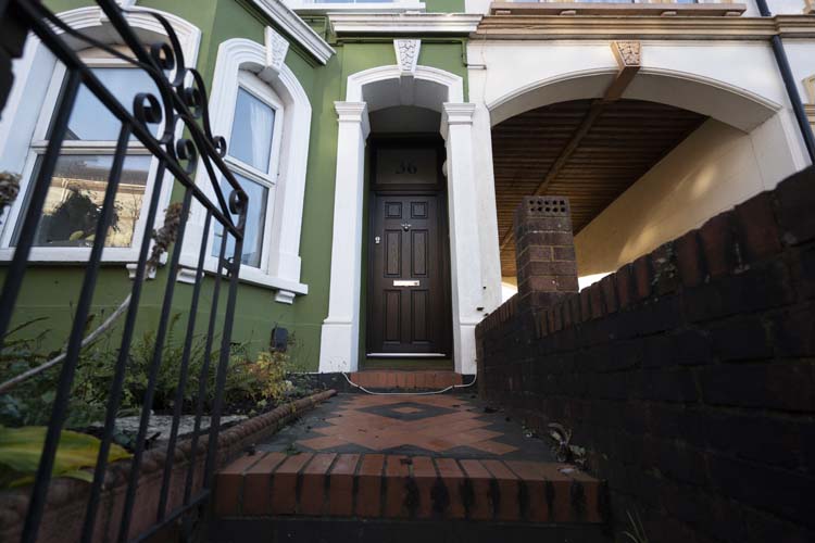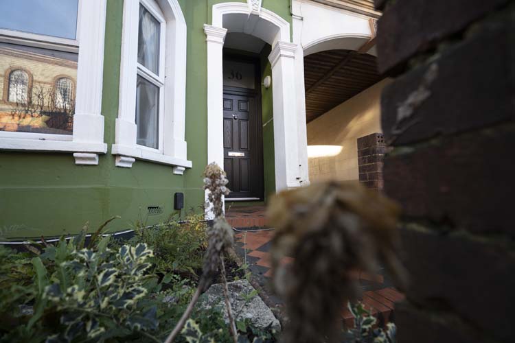 The traditional black door makes a bold statement to the entrance of the Period Victorian terrace property and looks stunning against the green render.