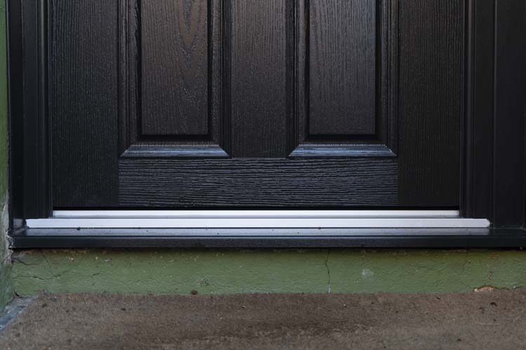 The traditional black front door features a robust core that offers exceptional security, weather resistance, and acoustic performance for the Aldershot property. Additionally, it enhances energy efficiency, helping to reduce both carbon footprint and energy bills.