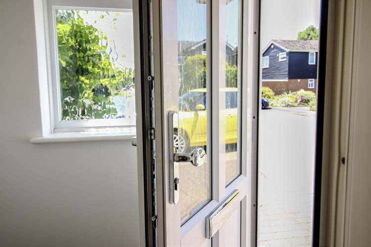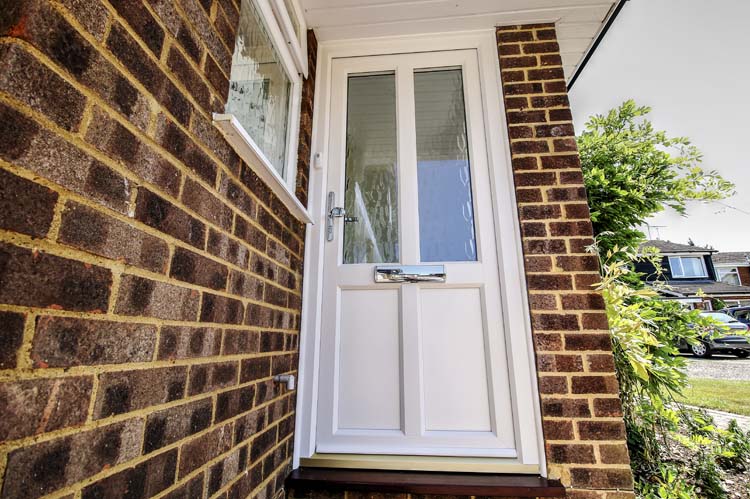 The style of this uPVC front door in Reading was chosen by the client and is similar to the previous door and the neighbouring houses, offering a classic style and much more modern look and feel. The white both on the outside and inside provides a more classic feel to the property. The clients chose a chrome lever and letterbox.