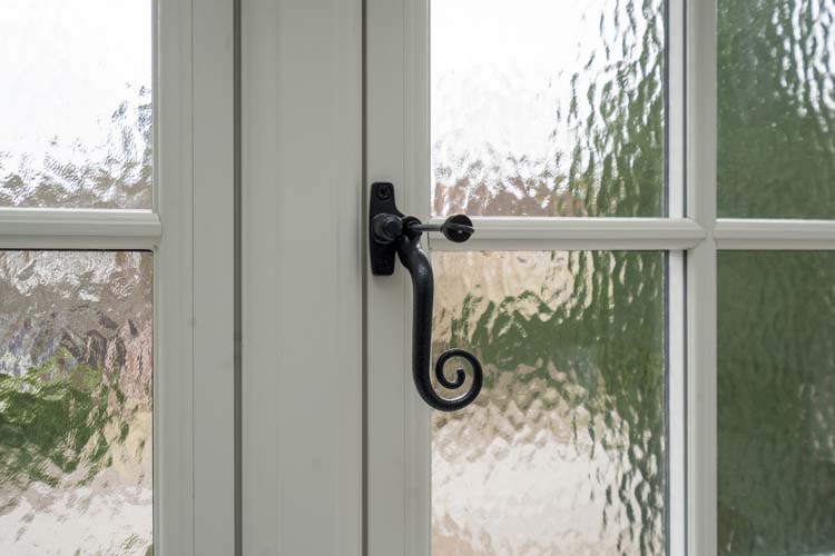 The homeowners thoughtfully selected heritage-style antique black monkey tail handles and peg stays for their Georgian bar windows, adding a timeless and sophisticated, authentic period charm to the interior.
