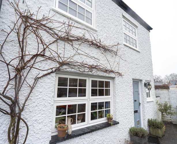 The White Georgian mock sash windows have been manufactured with traditional mouldings and Georgian glazing bars to preserve the period charm of the thatched cottage while enhancing modern performance.