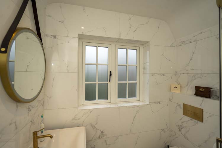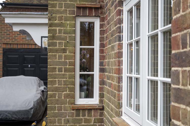 The Frensham property now benefits from more natural light thanks to the modern design of the slim white uPVC flush window frames and clever use of advanced glazing technology. The light naturally warms the house, helping to improve thermal efficiency and lower energy bills.