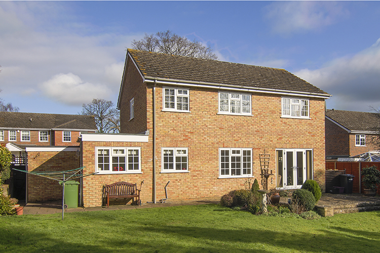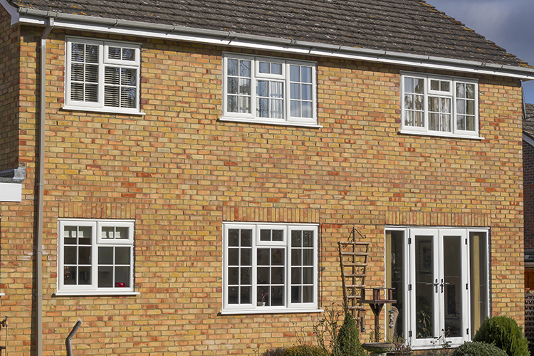 This beautiful family home in Windsor still had the original timber sash windows which were in need of replacement. They were single glazed, draughty and showing signs of wear and tear. We replaced the front windows with double glazed timber alternative sliding sash windows in a white grained wood finish and authentic Georgian bars. The rear windows were casements so we duplicated the styles again, in keeping with the original character. We also installed French Doors to the living room. The white grained wood finish matches that of the windows.