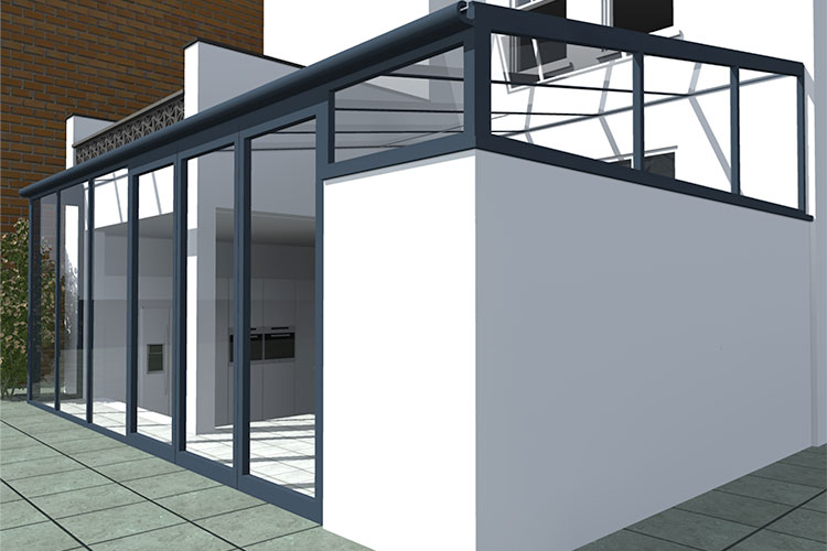 Our client based in London met with our Designer at our showroom in Berkshire. He brought plans that his Architect had drawn up which showed a full glass-to-glass structure however, this was proving to be very expensive. Our Designer came up with a wintergarden design that met our client’s brief and was in budget. We created 3D drawings of the proposed design which allowed the property owner to visualise the end result.