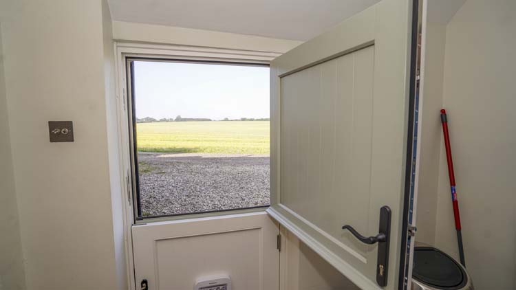The wooden stable door has been installed into the utility room at the property’s rear, leading to a spectacular landscape beyond.