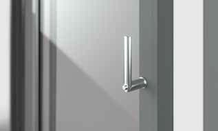 Both sliding doors have a stainless-steel designer locking handle with a latch function for convenient opening and closing. The handle locks in place when in the vertical position, so it can be used to pull the sliding panel without turning unexpectedly